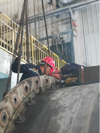 檢修期間,技術(shù)人員全程現(xiàn)場(chǎng)駐點(diǎn)指導(dǎo)與監(jiān)督。從舊端蓋的拆卸、接觸面的精細(xì)打磨處理,到新端蓋的精準(zhǔn)起吊定位以及最終的密封性能測(cè)試,每一道工序均嚴(yán)格遵循既定工藝標(biāo)準(zhǔn)和質(zhì)量要求。面對(duì)端蓋重量大、安裝空間受限等技術(shù)難題,檢修團(tuán)隊(duì)迎難而上,憑借專業(yè)的吊裝設(shè)備和精湛的操作技能,平穩(wěn)高效地完成了舊端蓋拆除與新端蓋安裝就位。經(jīng)過細(xì)致調(diào)整連接螺栓的緊固力矩,確保了端蓋與筒體之間達(dá)到卓越的密封效果。安全監(jiān)督人員全程旁站監(jiān)護(hù),對(duì)吊裝作業(yè)、動(dòng)火作業(yè)、臨時(shí)用電等關(guān)鍵環(huán)節(jié)實(shí)施嚴(yán)格安全管控,有力保障了整個(gè)施工過程的安全零事故。通過全體參檢人員的協(xié)同攻堅(jiān),端蓋更換任務(wù)較原計(jì)劃提前17小時(shí)圓滿完成。